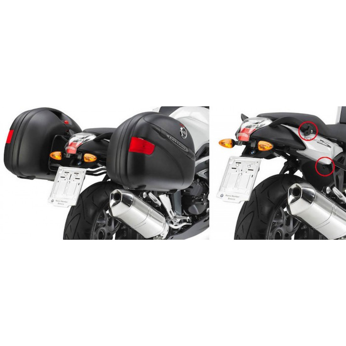 Крепеж боковых кофров KLR692 для BMW K1200R / K1300R (2005-2016) предназначен для установки любых боковых кофров системы Monokey ® за исключением кофров серии KAPPA K33N (взаимозаменяем с GIVI V35; V37).
