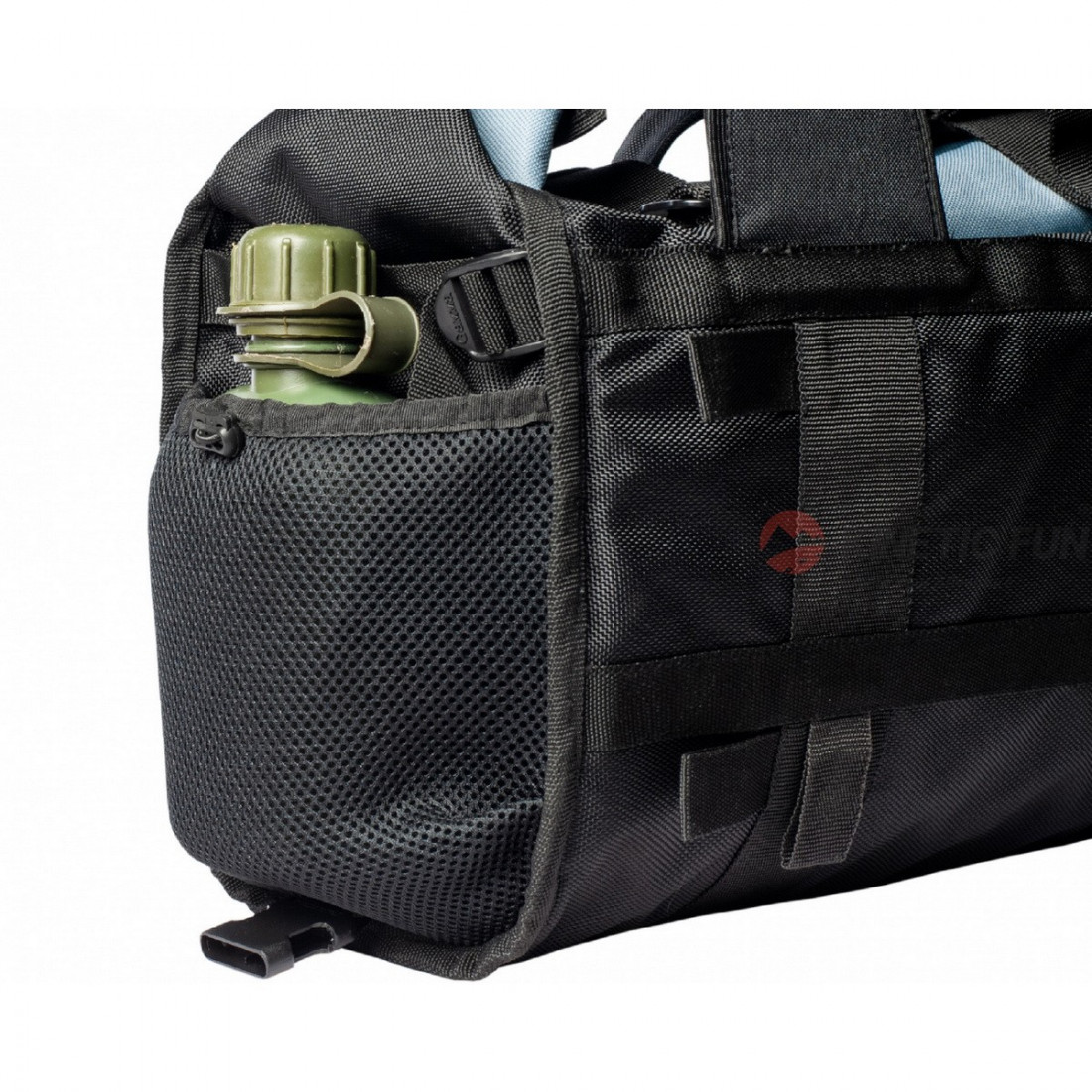 - Сбоку сумки находится открытый карман со стяжкой, который подойдет для бутылки с водой или небольших предметов