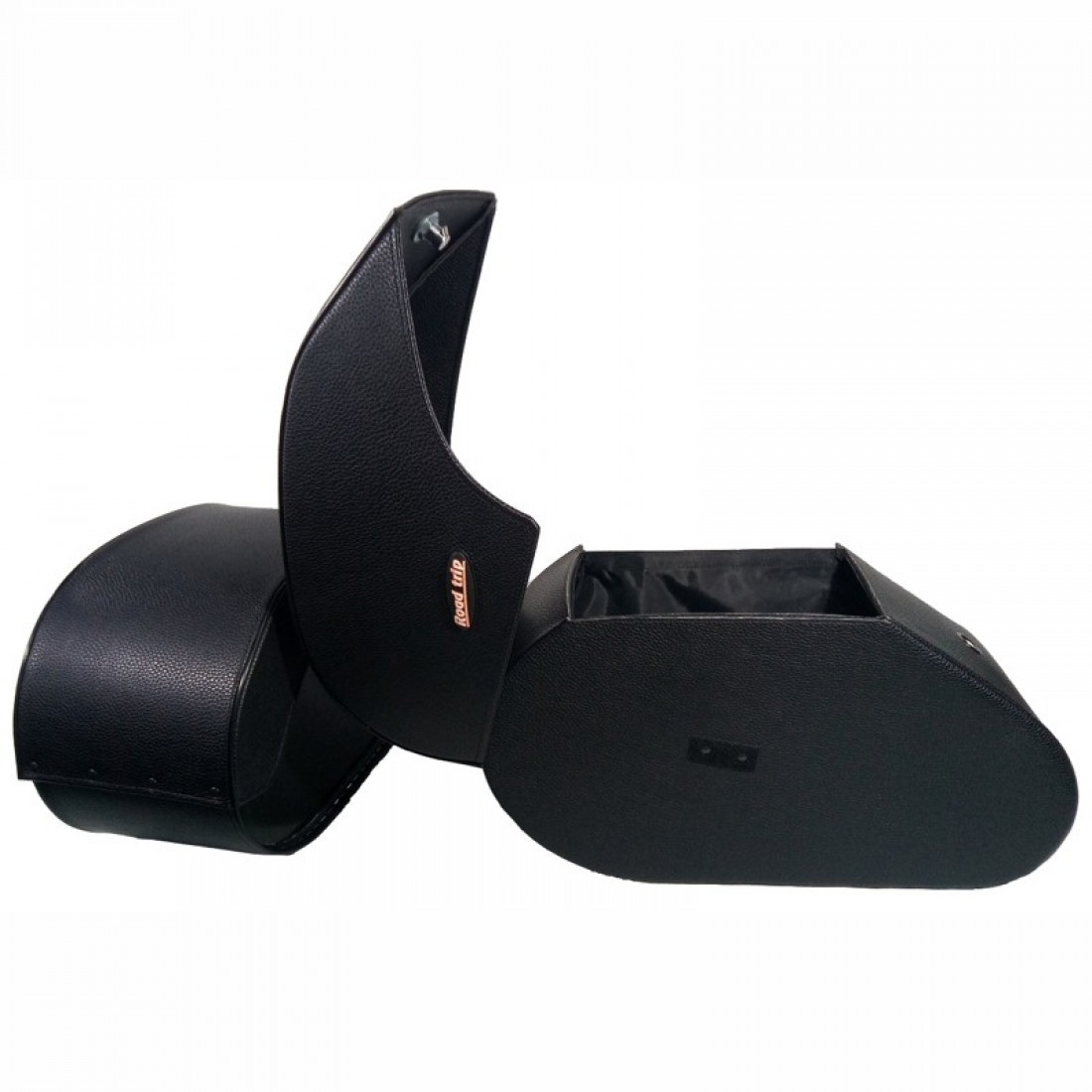 Кофры из монолитного пластика с отделкой из искусственной кожи.