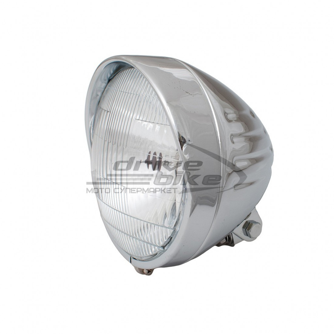 Кастом-фара в хромированном корпусе. Проста в установке и отлично освещает дорогу. Предназначена для установки галогеновой лампочки H4.