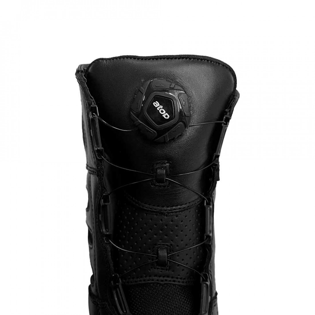 - Застежка на трещотке Atop: Ботинки оснащены современной и надежной системой быстрой шнуровки с механизмом Atop. Это позволяет мгновенно и точно отрегулировать плотность облегания по ноге одним движением, а для фиксации используется прочный пластиковый храповый механизм.
