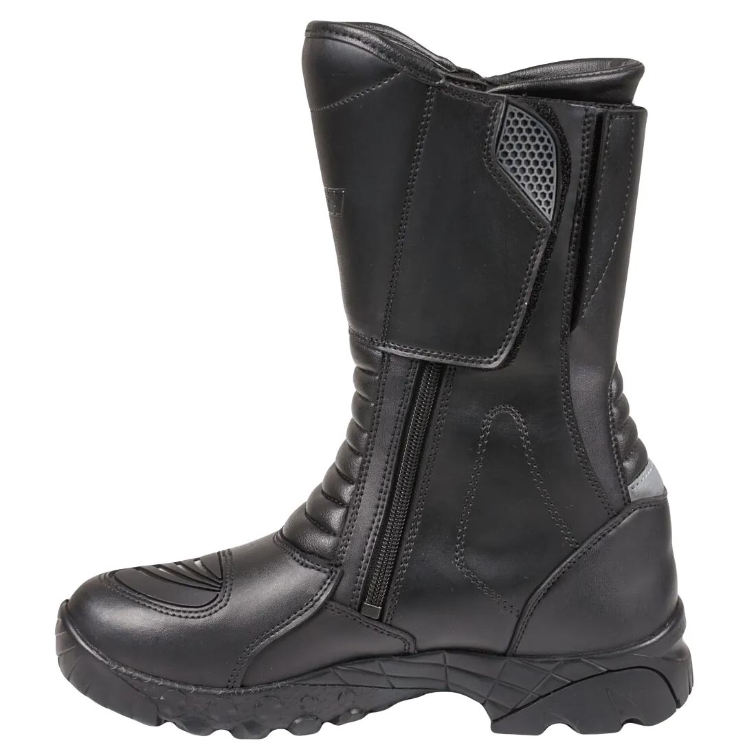 Конструкция RUSH Jumper продумана для практичности. Улучшенная двухсторонняя молния YKK с фиксирующими липучками позволяет не только удобно обуваться, но и полностью расстегнуть ботинок для быстрой сушки внутренней части. Гофрированные вставки в области подъема и задника обеспечивают необходимую гибкость при ходьбе и управлении мотоциклом, не создавая дискомфорта. Анатомическая стелька, которую можно заменить, повторяет форму стопы для оптимальной поддержки.
