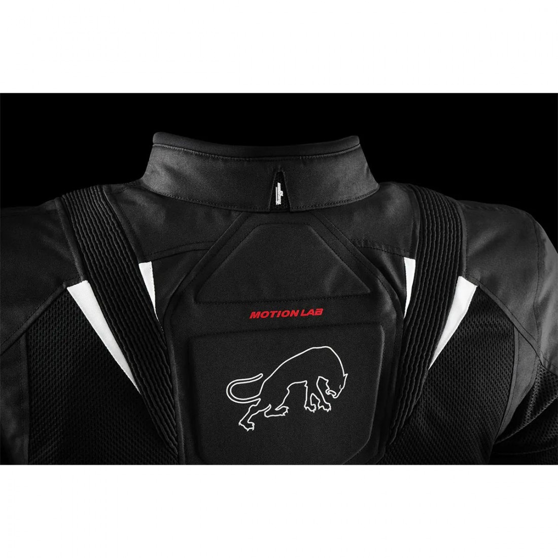 Безопасность обеспечивается съемными протекторами нового поколения D3O®, сертифицированными по стандарту CE. Эти вставки на плечах и локтях остаются гибкими для комфорта и мгновенно активируются при ударе. Куртка имеет карман для установки дополнительных протекторов D3O® для спины (продаются отдельно). Критические зоны усилены двойными внутренними швами, а особая подкладка Skin Protect от лаборатории MOTION LAB значительно повышает устойчивость материала к истиранию и влаге.
