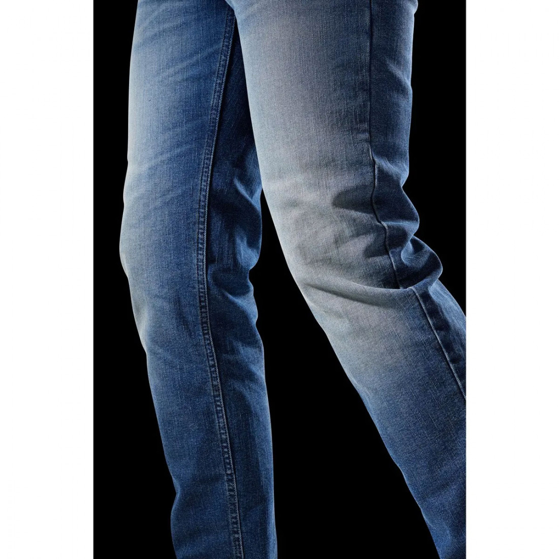 • Эластичный деним: Состав материала — 98% хлопок и 2% эластан. Это делает джинсы удобными и обеспечивает необходимую свободу движений при посадке на мотоцикл, при этом они остаются прочными и выглядят как классические джинсы.