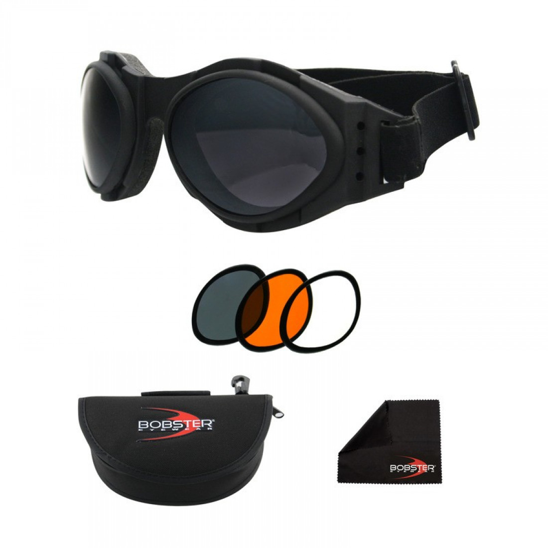 Очки BOBSTER BUGEYE 2 / 3 пары линз, черная оправа - легкие очки со сменными поликарбонатными стеклами. Серые, янтарные и прозрачные стекла с Anti-Fog покрытием отлично подойдут для езды в любое время дня и ночи. Прочная оправа из эластомерных полимеров с вентиляционными отверстиями препятствует запотеванию стекол, а регулируемый ремешок обеспечивает плотное прилегание. "BUGEYE 2"- идеальные очки для занятий экстремальными видами спорта с уплотнителем из пористой пены для дополнительной защиты глаз.