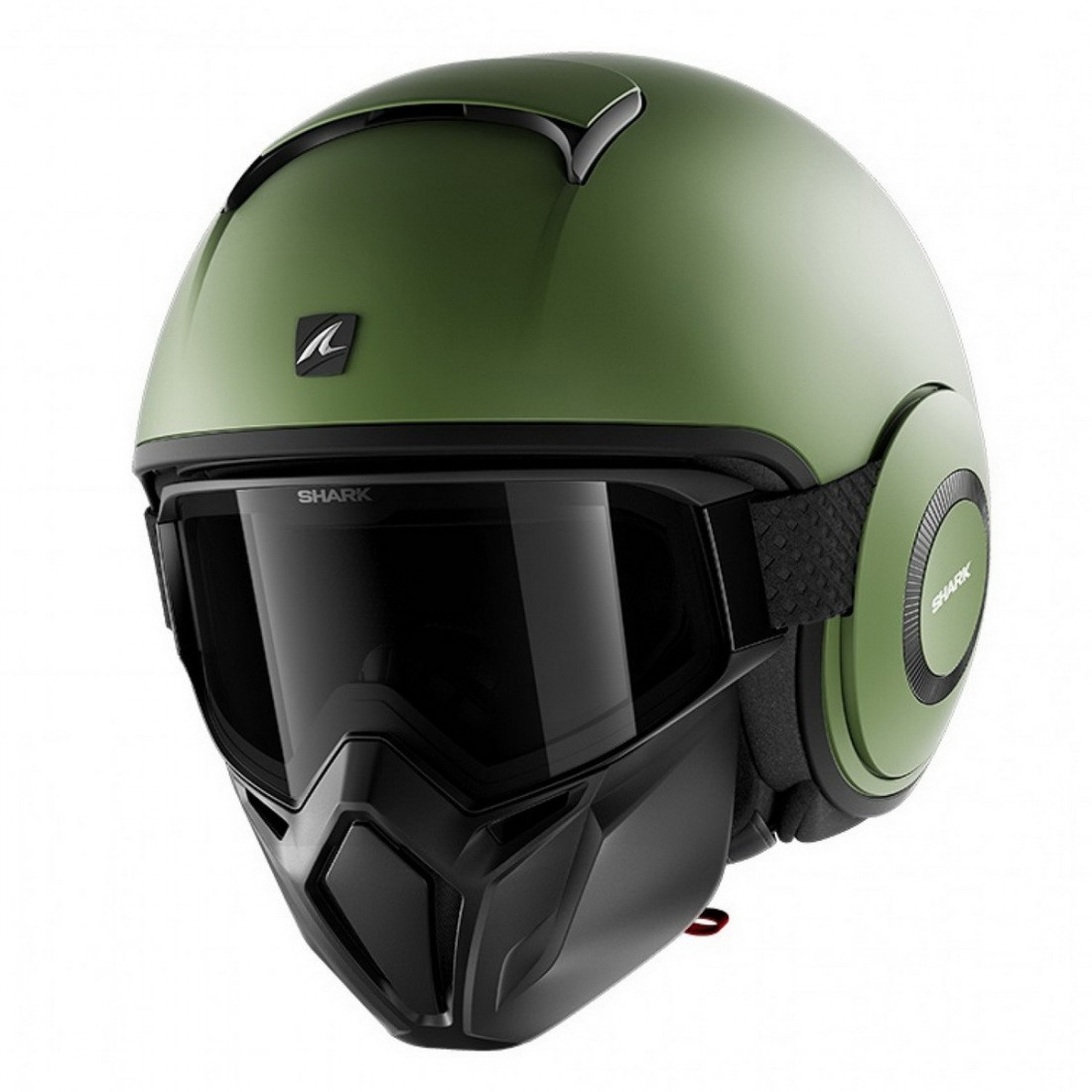 Шлем SHARK STREET-DRAK BLANK Зеленого цвета, можно отнести к очень популярному сегодня классу стритфайтер. Для удобства перемещения по городу маска может подниматься на лоб, а также под ней хорошо поместятся очки мотоциклиста, благодаря системе Easy Fit.