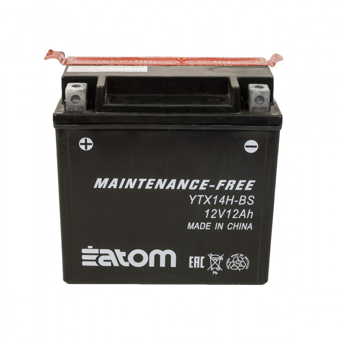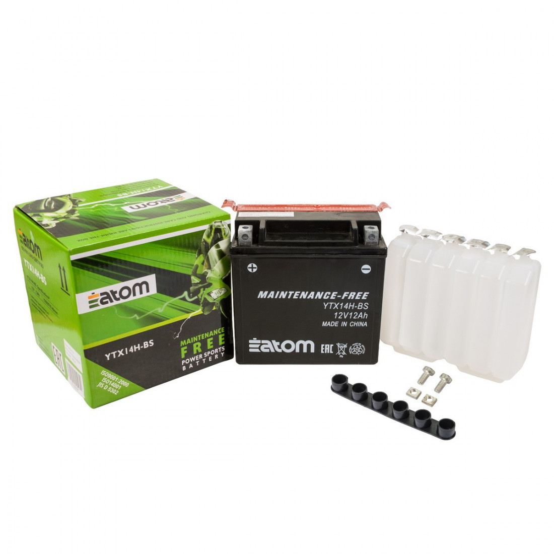 Мото аккумулятор ATOM YTX14H-BS MF – это надежный современный аккумулятор по доступной цене, который не подведет Вас и долго прослужит вам и вашему мотоциклу. Все аккумуляторы Atom соответствуют стандартам JIS и ISO и производятся в соответствии со спецификациями аналогичных аккумуляторов Yuasa. При покупке обращайте внимание на необходимую силу пускового тока.