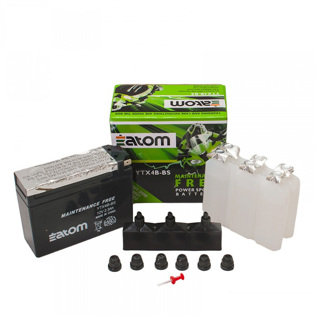 Мото аккумулятор ATOM YTX4B-BS (замена YT4B-BS) MF – это надежный современный аккумулятор по доступной цене, который не подведет Вас и долго прослужит вам и вашему мотоциклу. Все аккумуляторы Atom соответствуют стандартам JIS и ISO и производятся в соответствии со спецификациями аналогичных аккумуляторов Yuasa. При покупке обращайте внимание на необходимую силу пускового тока.