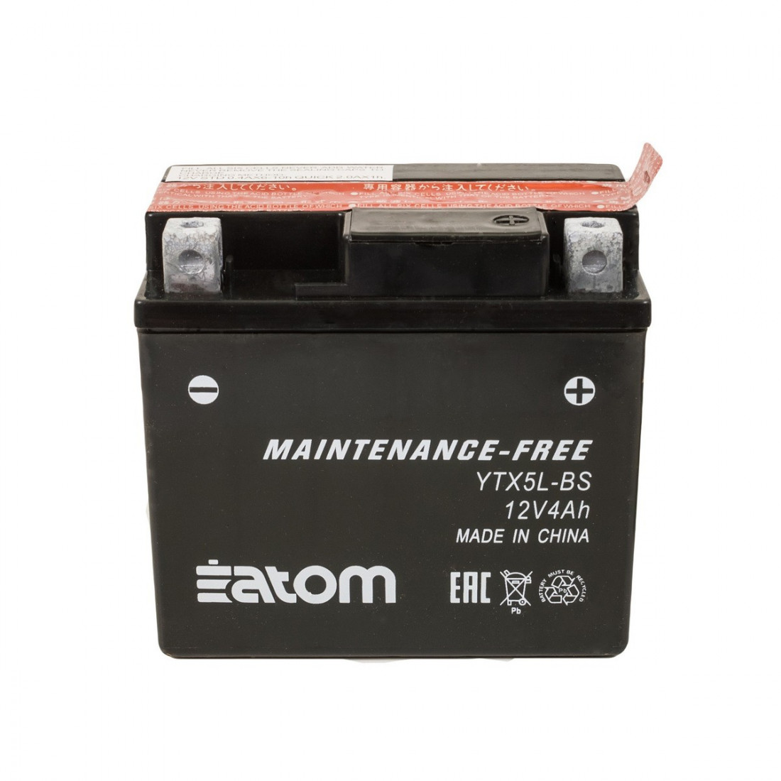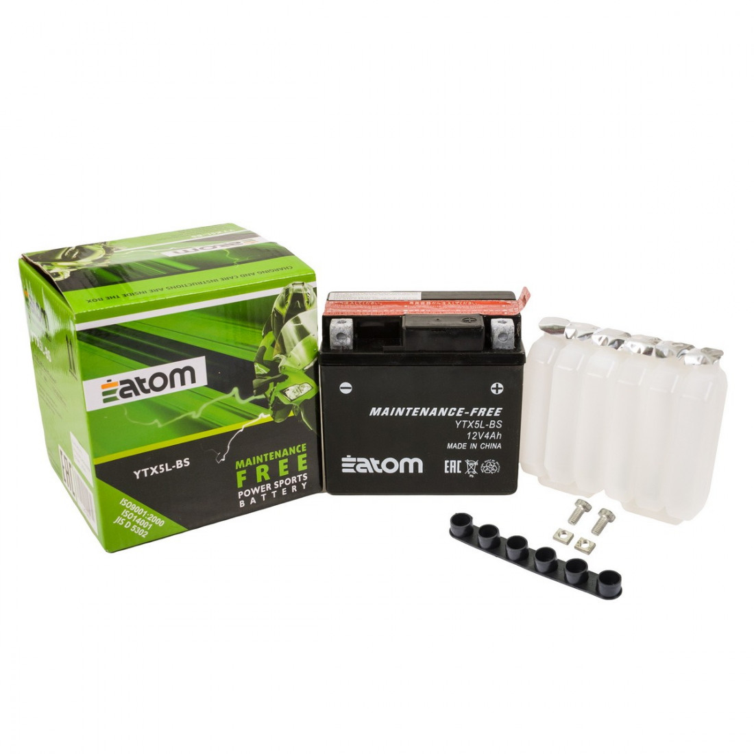 Мото аккумулятор ATOM YTX5L-BS MF – это надежный современный аккумулятор по доступной цене, который не подведет Вас и долго прослужит вам и вашему мотоциклу. Все аккумуляторы Atom соответствуют стандартам JIS и ISO и производятся в соответствии со спецификациями аналогичных аккумуляторов Yuasa. При покупке обращайте внимание на необходимую силу пускового тока.