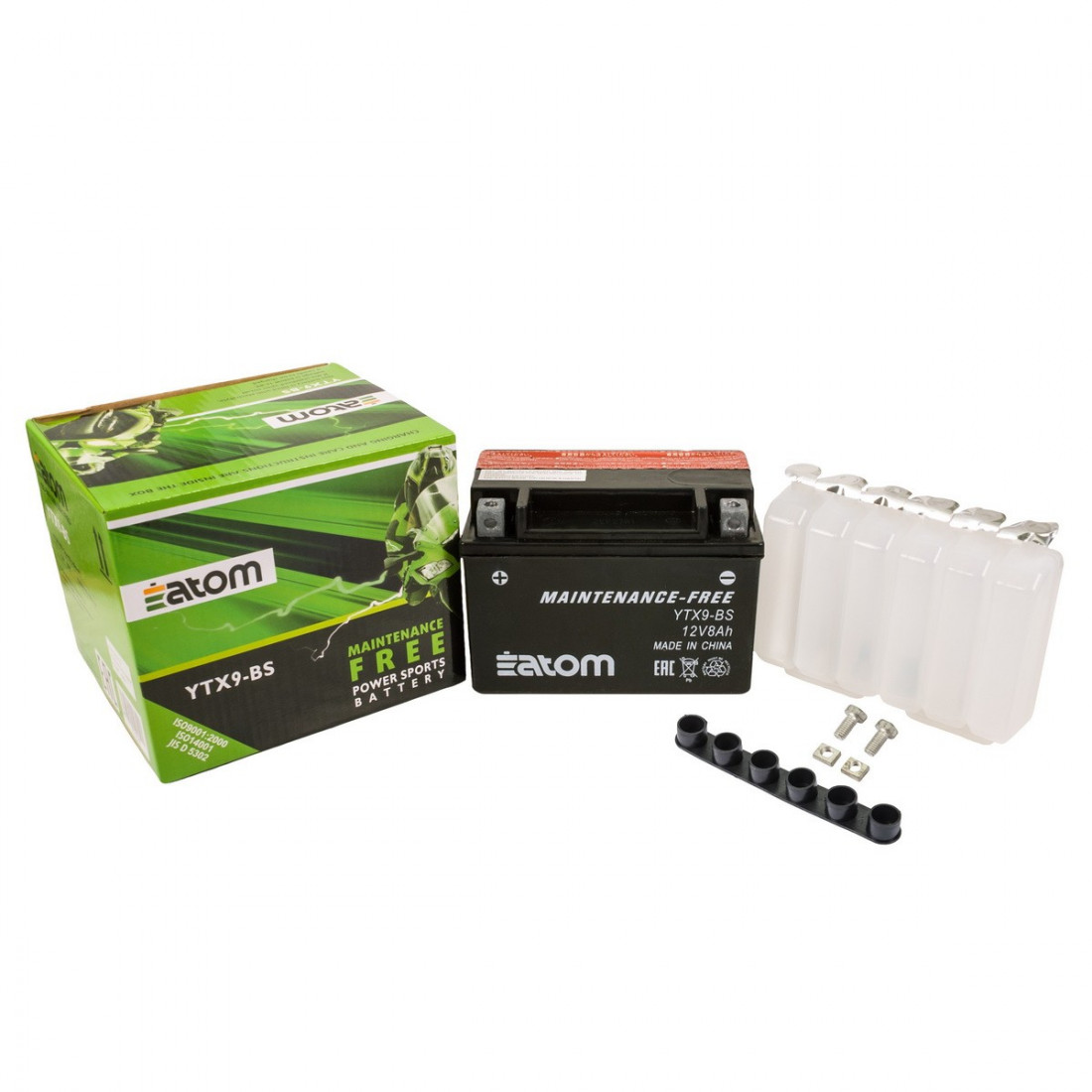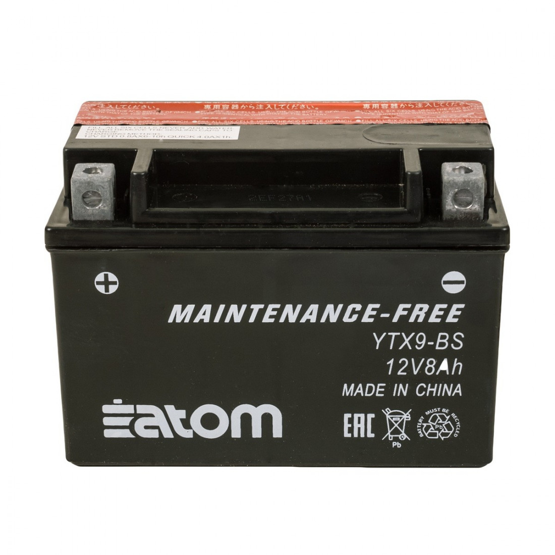 Мото аккумулятор ATOM YTX9-BS MF – это надежный современный аккумулятор по доступной цене, который не подведет Вас и долго прослужит вам и вашему мотоциклу. Все аккумуляторы Atom соответствуют стандартам JIS и ISO и производятся в соответствии со спецификациями аналогичных аккумуляторов Yuasa. При покупке обращайте внимание на необходимую силу пускового тока.