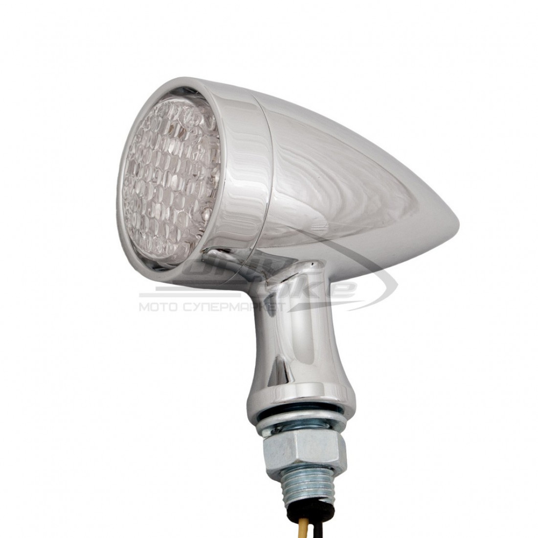 Светодиодные поворотники ''Bullet'' выполнены в стильном хромированном корпусе. А благодаря своей яркой оранжевой светодиодной подсветке, эти поворотники сделают ваш мотоцикл более заметным на дороге.