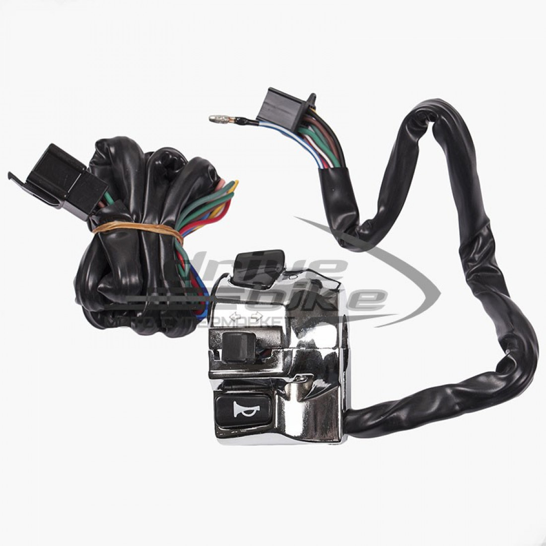 Универсальный пульт с двумя вариантами разъёма. Служит для переключения режимов света, управления поворотниками и звуковым сигналом. Подходит на большинство чопперов и классических мотоциклов с диаметром руля 22мм.