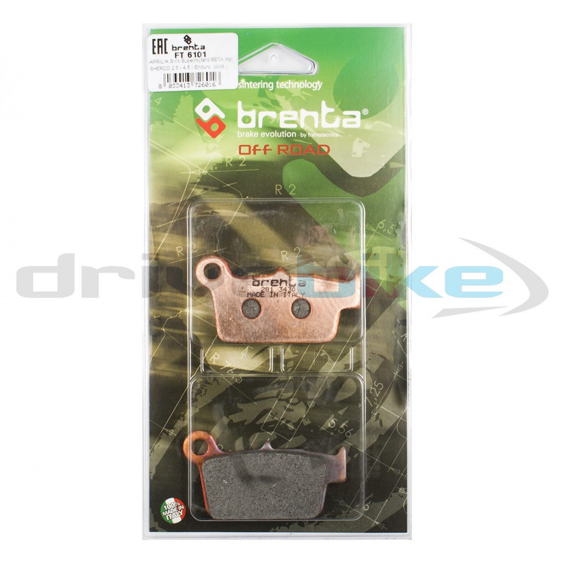 Серия синтетических тормозных колодок Brenta FT6101 Off Road – специально разработана для применения на внедорожной технике, мотокроссе и эндуро. Фрикционный материал с добавлением частиц металла изготовлен при помощи спекания (Sintered). Тормозные колодки Brenta Off Road обеспечивают высокий коэффициент трения, который обеспечивает лучшее тормозное усилие в сложных условиях бездорожья. Brenta производятся компанией Frenotecnica в Италии, на той же фабрике, которая производит OEM запчасти для некоторых итальянских производителей мотоциклов.