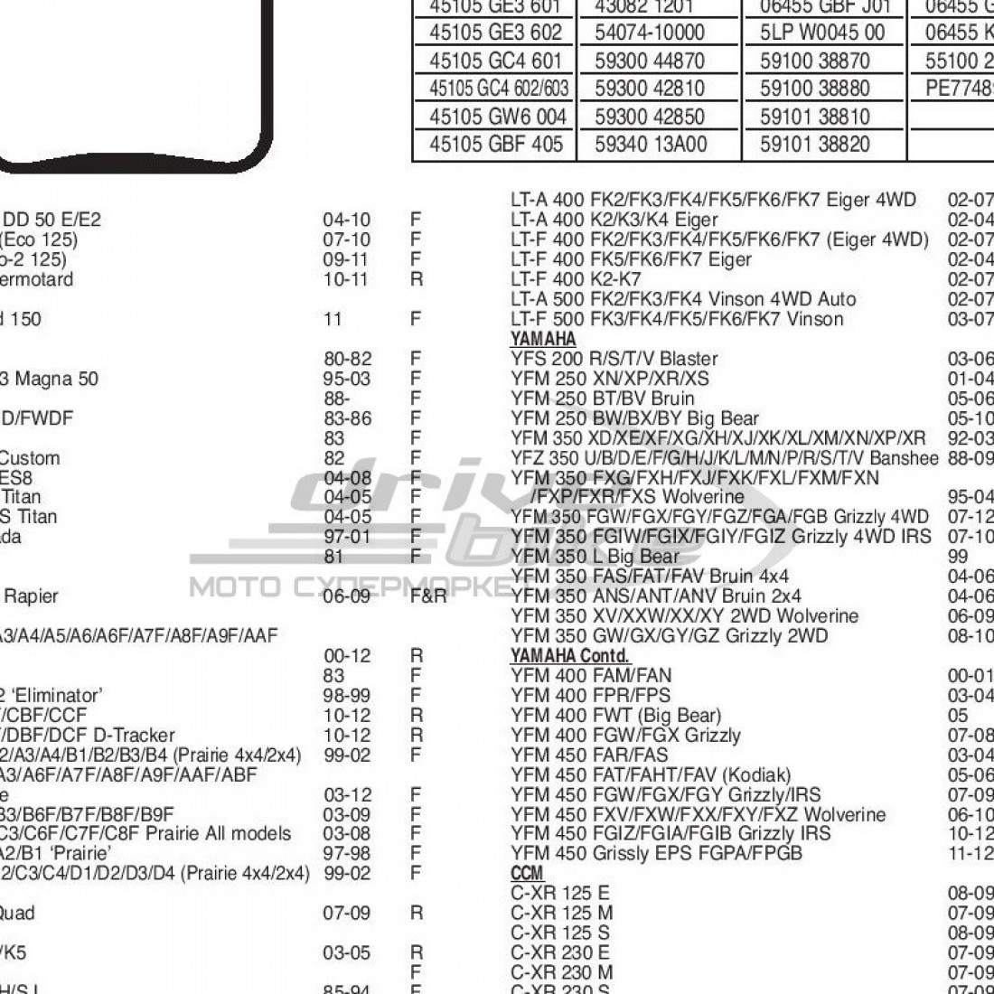 Эта деталь применяется на мотоциклах следующих моделей (полный список см. на картинках-сканах каталога):
