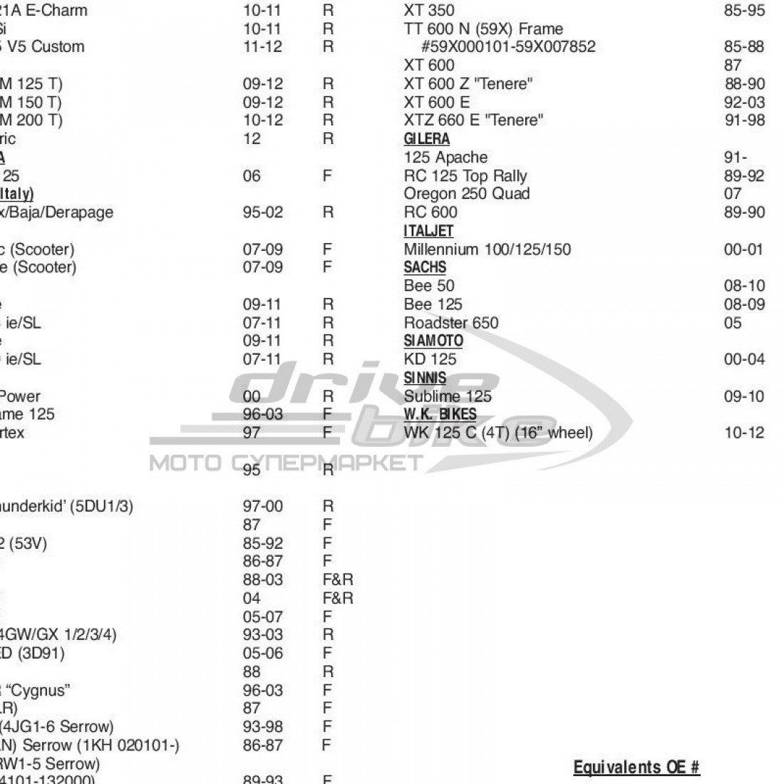 Эта деталь применяется на мотоциклах следующих моделей (полный список см. на картинках-сканах каталога):
