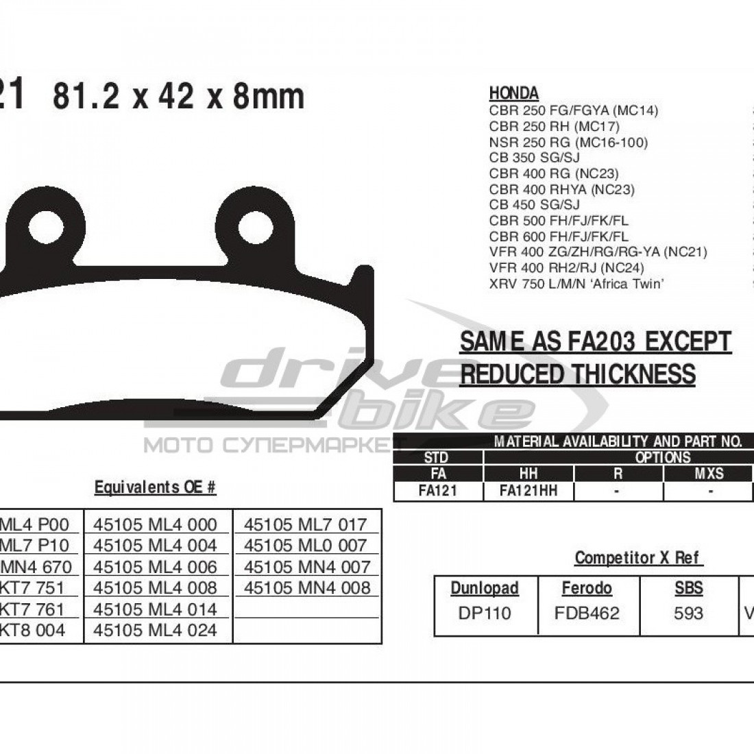 Хотите купить Тормозные колодки FA121 для мотоцикла легко, экономя ваше время и деньги? Тогда поспешите, ведь на складе осталось совсем немного! Вам точно стоит заглянуть в наш интернет-магазин МотоБрат, где вы найдёте тормозная система на любой вкус!