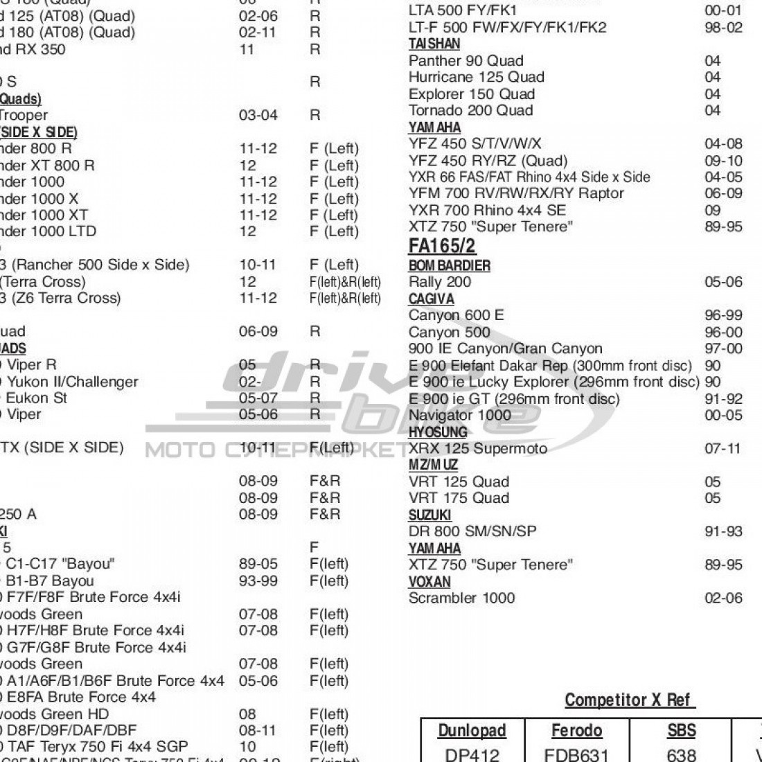 Эта деталь применяется на мотоциклах следующих моделей (полный список см. на картинках-сканах каталога):