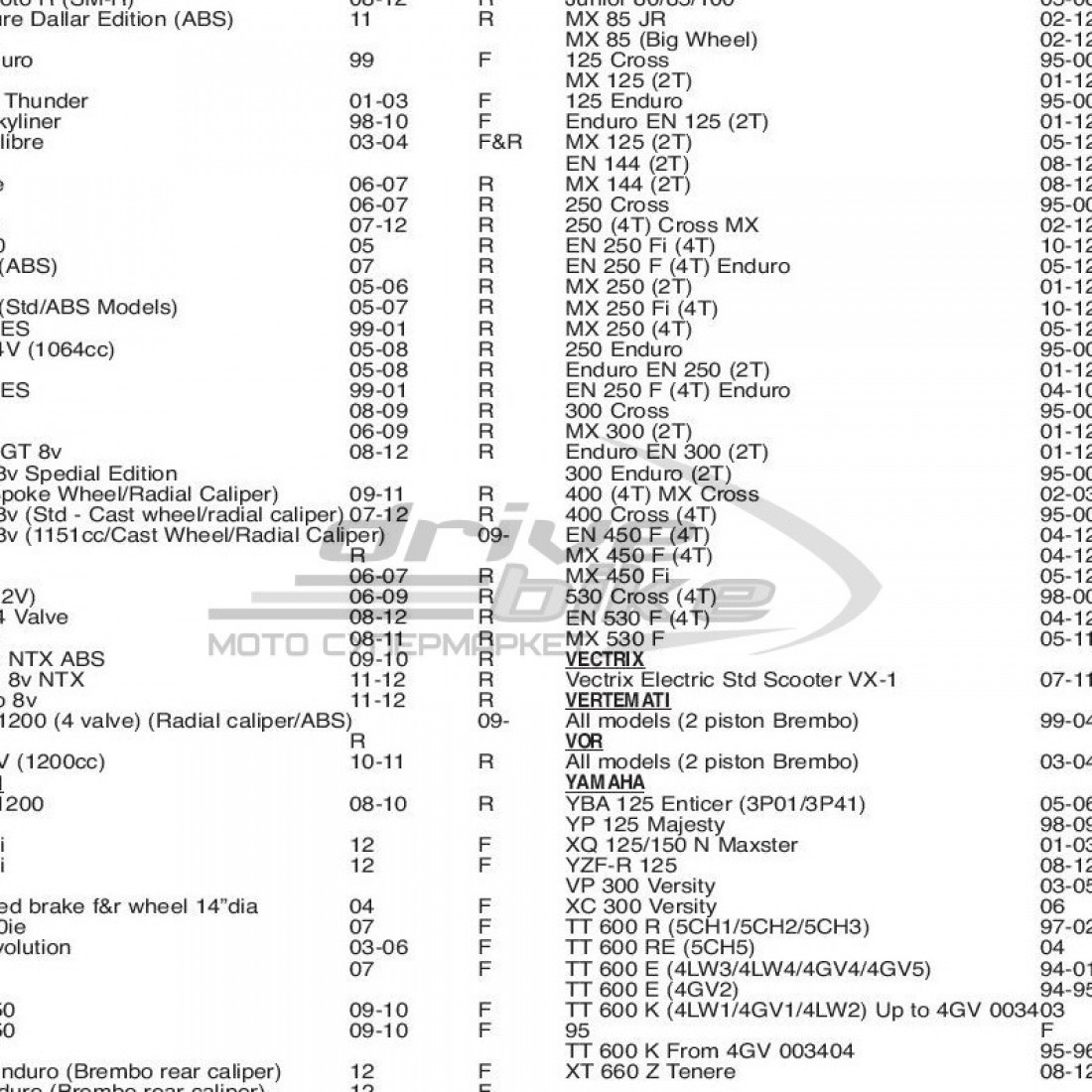 Эта деталь применяется на мотоциклах следующих моделей (полный список см. на картинках-сканах каталога):