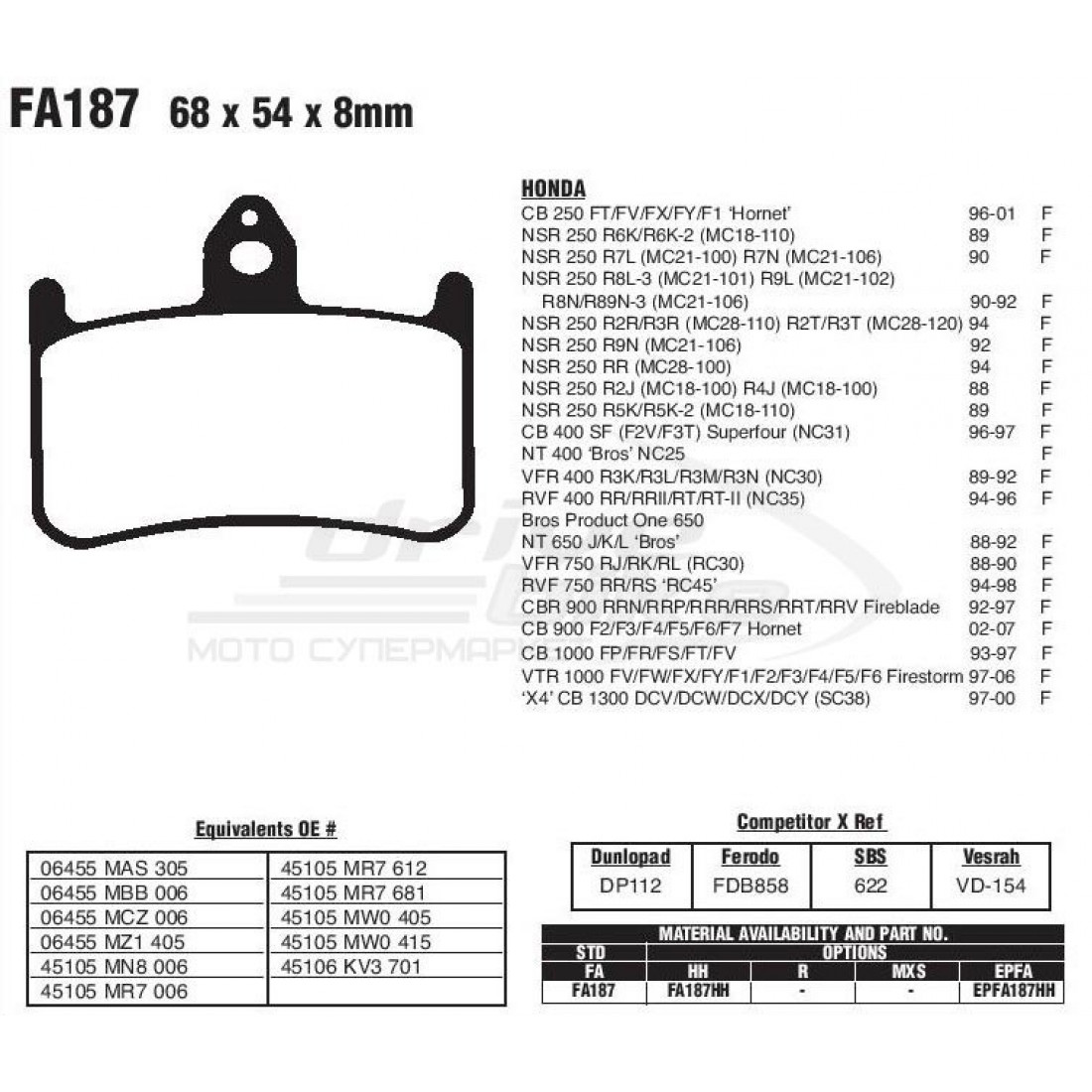 Хотите купить Тормозные колодки FA187 для мотоцикла легко, экономя ваше время и деньги? Тогда поспешите, ведь на складе осталось совсем немного! Вам точно стоит заглянуть в наш интернет-магазин МотоБрат, где вы найдёте тормозная система на любой вкус!