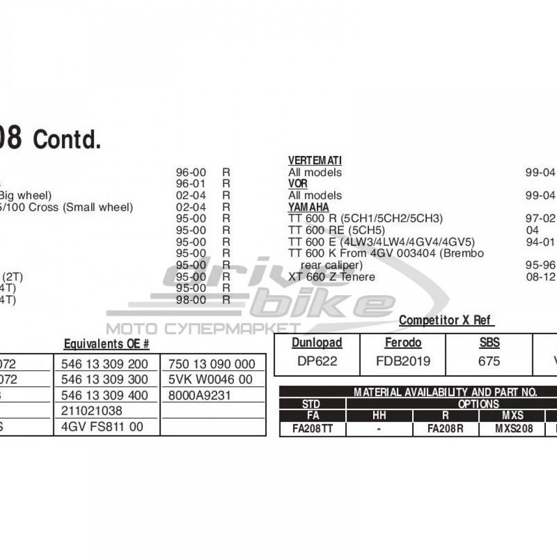 Тормозные колодки EBC FA208TT серии ТТ предназначены для использования на мотоциклах типа Эндуро и Супермото.