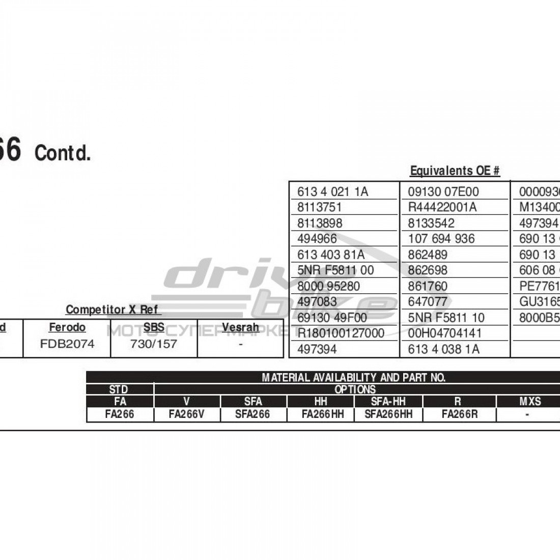 Хотите купить Тормозные колодки FA266 для мотоцикла легко, экономя ваше время и деньги? Тогда поспешите, ведь на складе осталось совсем немного! Вам точно стоит заглянуть в наш интернет-магазин МотоБрат, где вы найдёте тормозная система на любой вкус!