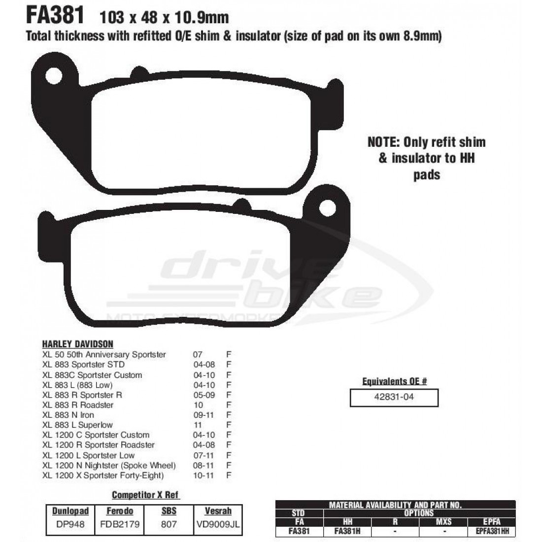 Тормозные колодки EBC FA381 серии Aramid обеспечивают эффективное торможение при любых погодных условиях и стабильные характеристики в независимости. В составе колодок присутсвует материал Aramid, который используется для предотвращения перегрева и преждевременного истирания тормозных колодок, что гарантирует стабильное торможение и длительный срок службы. Имеют хорошую износостойкость и не агрессивны к тормозным дискам. Рекомендованы для использования на классических мотоциклах, чопперах и крузерах.