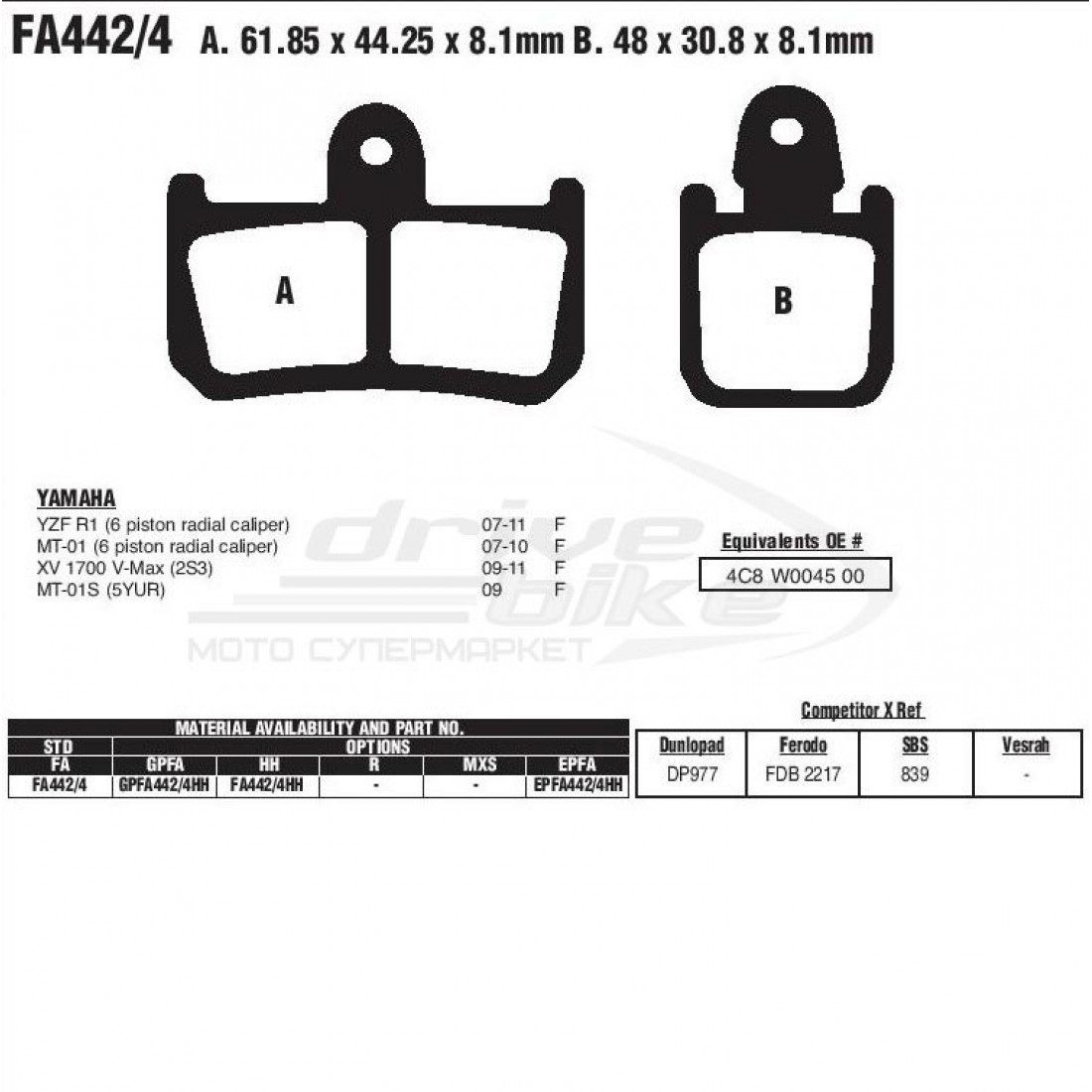 Хотите купить Тормозные колодки FA442/4 (4 шт. в комплекте) для мотоцикла легко, экономя ваше время и деньги? Тогда поспешите, ведь на складе осталось совсем немного! Вам точно стоит заглянуть в наш интернет-магазин МотоБрат, где вы найдёте тормозная система на любой вкус!