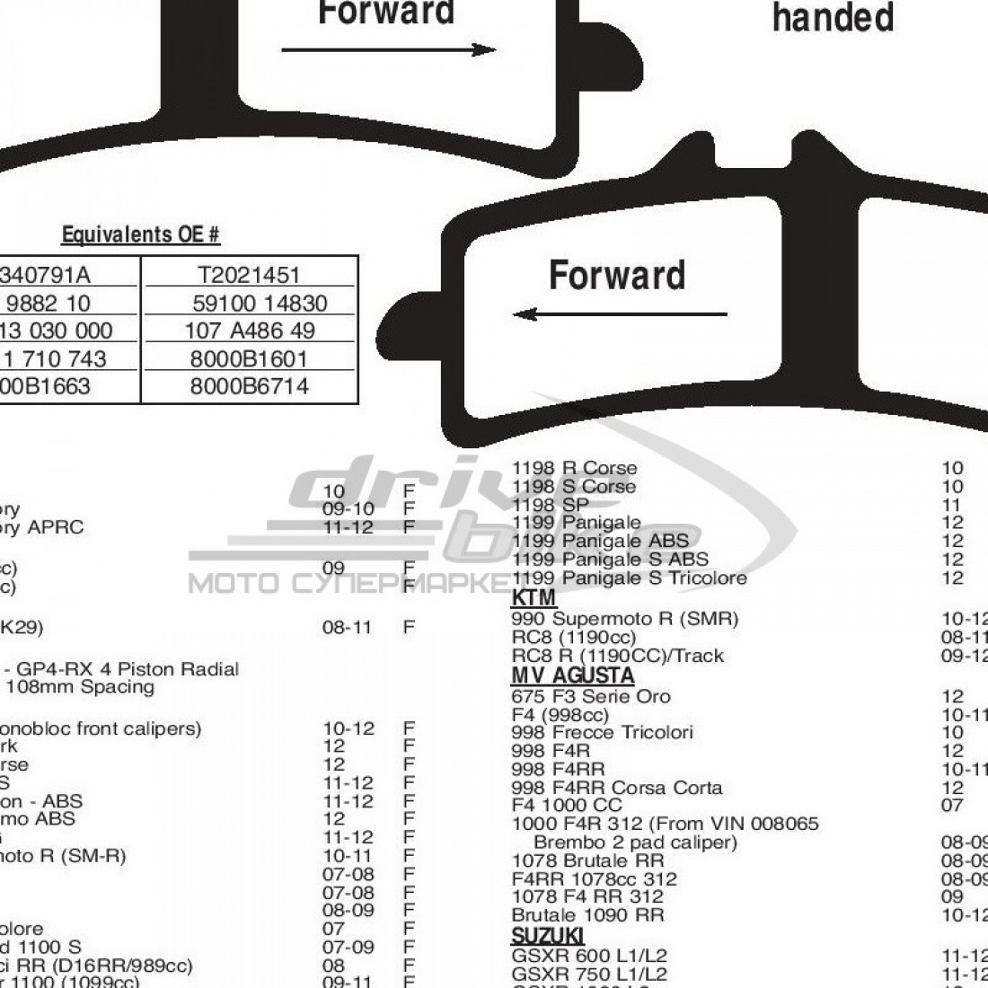 Эта деталь применяется на мотоциклах следующих моделей (полный список см. на картинках-сканах каталога):