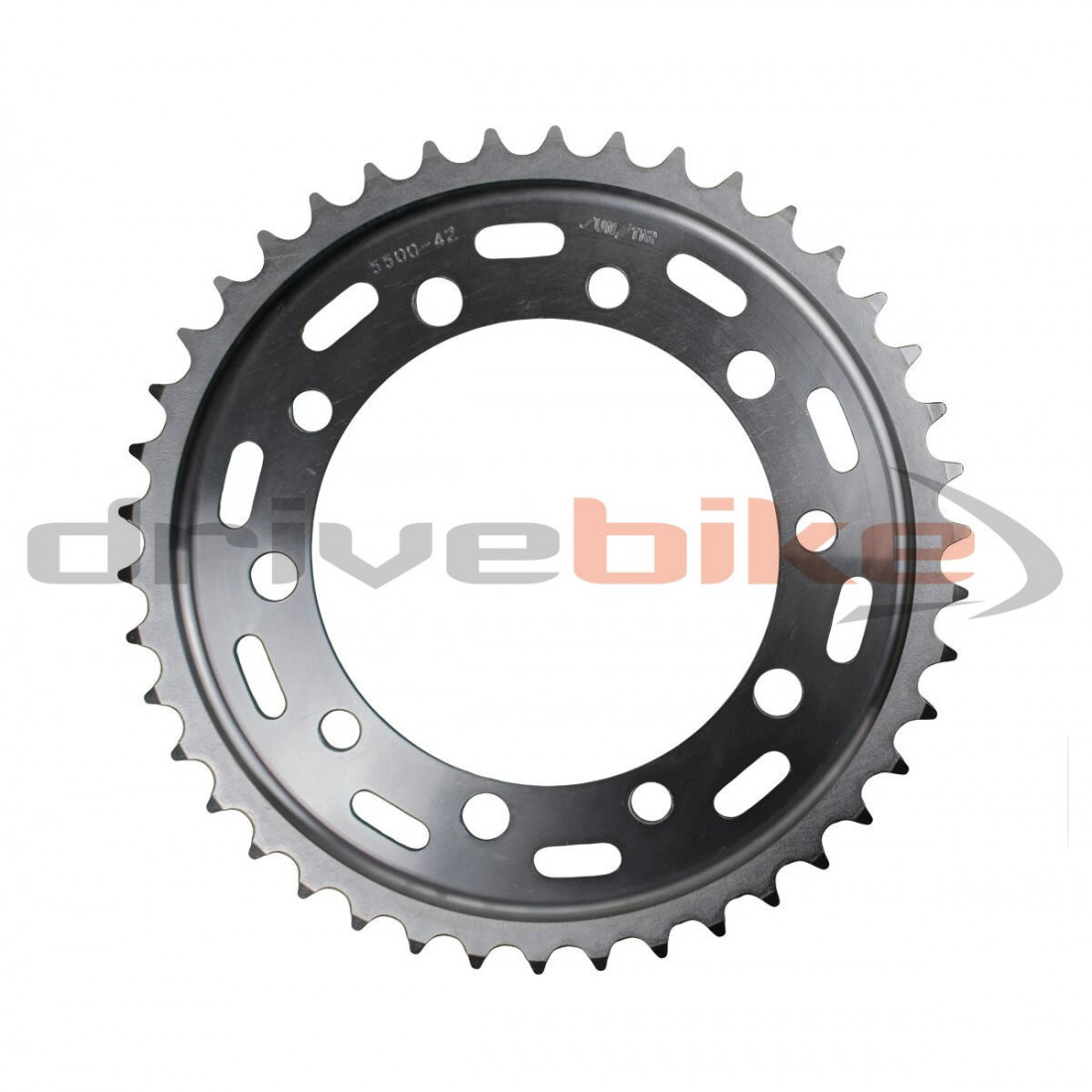 Задняя звезда SUNSTAR 42 зубьев 1-5500-42 стальная / JTR1800-42 прошла термическую обработку для дополнительной прочности и износостойкости. Большинство стальных задних звезд Sunstar являются оцинкованными, и обработаны специальной краской для длительной защиты от коррозии. Такие звезды устанавливаются практически на все современные мотоциклы еще на заводе.